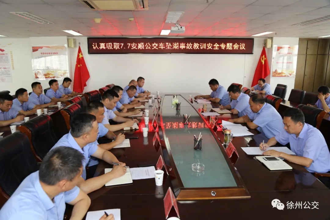為吸取“7·7”安順公交車墜湖事故教訓,認真貫徹落實習近平總書記關于安全生產(chǎn)重要論述,按照市委、市政府安全生產(chǎn)專項整治三年行動方案及市交通運輸局、市交通控股集團相關要求,7月10日,徐州公交集團召開了認真吸取“7·7”安順公交車墜湖事故教訓安全專題會議。集團總經(jīng)理馮陸陸,常務副總經(jīng)理蔣成彪,調(diào)研員王遠慶以及各營運公司經(jīng)理、安全經(jīng)理和機關、直屬單位負責人參加了會議。