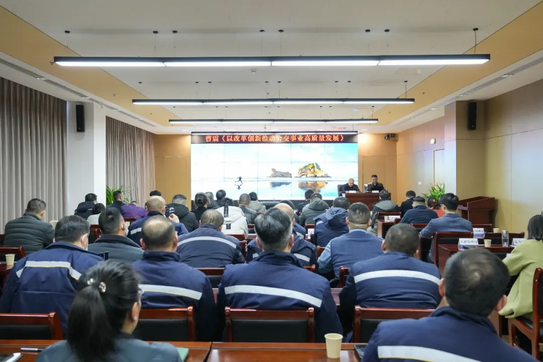 曹震緊密結(jié)合公交企業(yè)實(shí)際情況,圍繞公交市場化轉(zhuǎn)型主題,縱觀公交60余年發(fā)展脈絡(luò),和大家分享、交流了對公交企業(yè)市場化轉(zhuǎn)型發(fā)展的認(rèn)識,以及黨建引領(lǐng),推動公交轉(zhuǎn)型發(fā)展取得“六個(gè)轉(zhuǎn)變”的經(jīng)驗(yàn)做法。同時(shí),結(jié)合公交發(fā)展當(dāng)前面臨的形勢和問題,從抓黨建宣傳,發(fā)揮國企優(yōu)勢;抓思想作風(fēng),匯聚正面能量;抓進(jìn)度任務(wù),完成考核指標(biāo);抓精細(xì)管理,提升服務(wù)質(zhì)量;抓改革創(chuàng)新,助力發(fā)展驅(qū)動;抓政策研究,爭取政府扶持等方面談了破局發(fā)展的思考和出路。