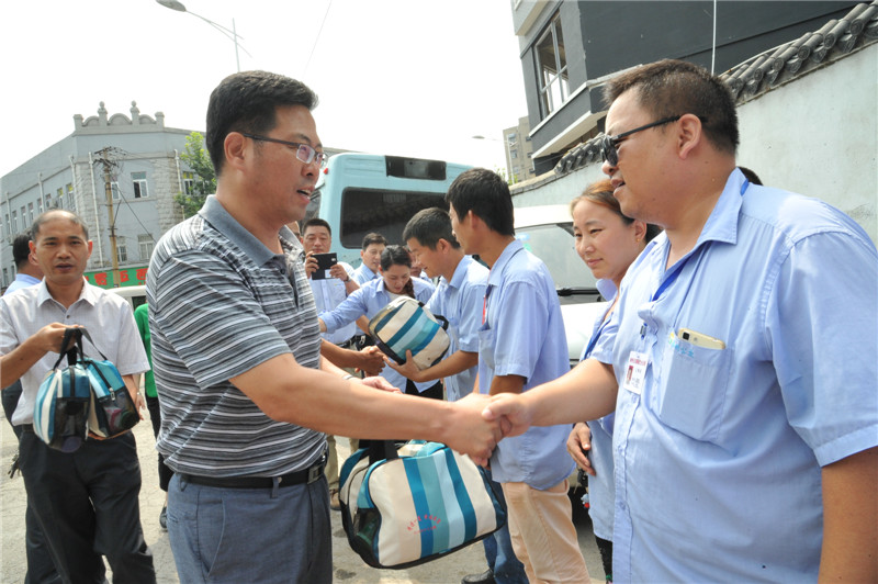 酷暑天氣,在公司所有員工的齊心協(xié)力下,全市161條公交線路,2300多臺公交車運行順暢。(圖為市總工會副主席王建民慰問公交駕駛員。)